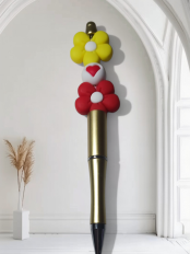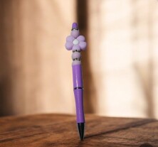 Dieser dekorative Kugelschreiber besticht durch sein verspeiltes und farbenfrohes Design. Der oberre Teil ist mit iner großen , stillvollen Blume in verschieden Farben mit Weiß verziert , die dem Stift einen fröhlichen und einzigartigen Look verleiht. Der Stift ist in verschieden Farben gehalten, ergonomissch geformt und liegt angehm in der Hand.